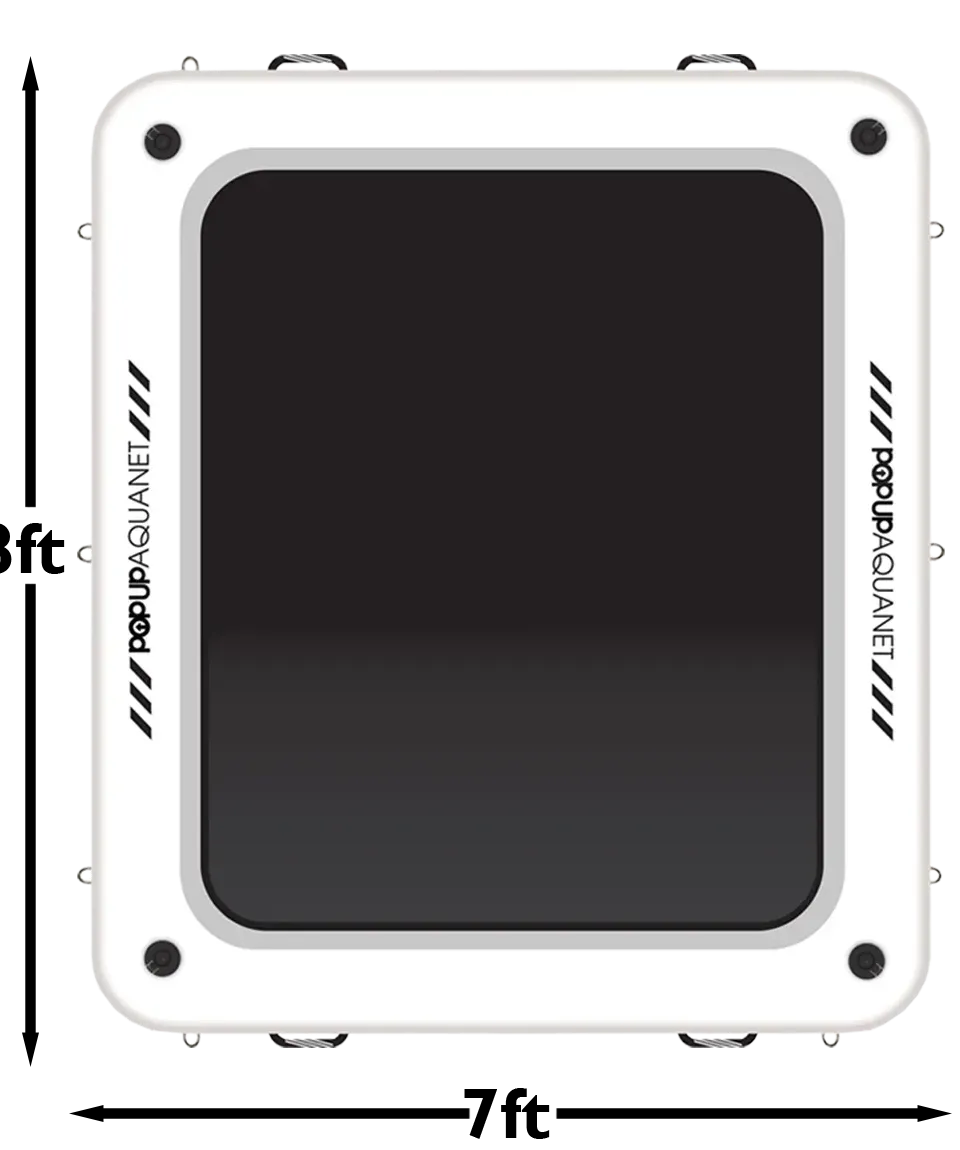 Every AquaNet comes ready to use with a high-capacity hand pump for quick inflation, carrying straps for easy transport, a repair kit for long-term durability, and a protective carry bag for compact storage. The 8' x 7' x 8" platform inflates in minutes and deflates just as quickly for convenient seasonal storage.